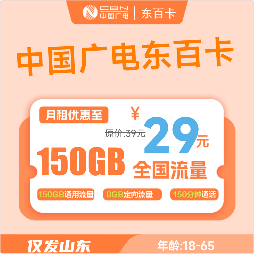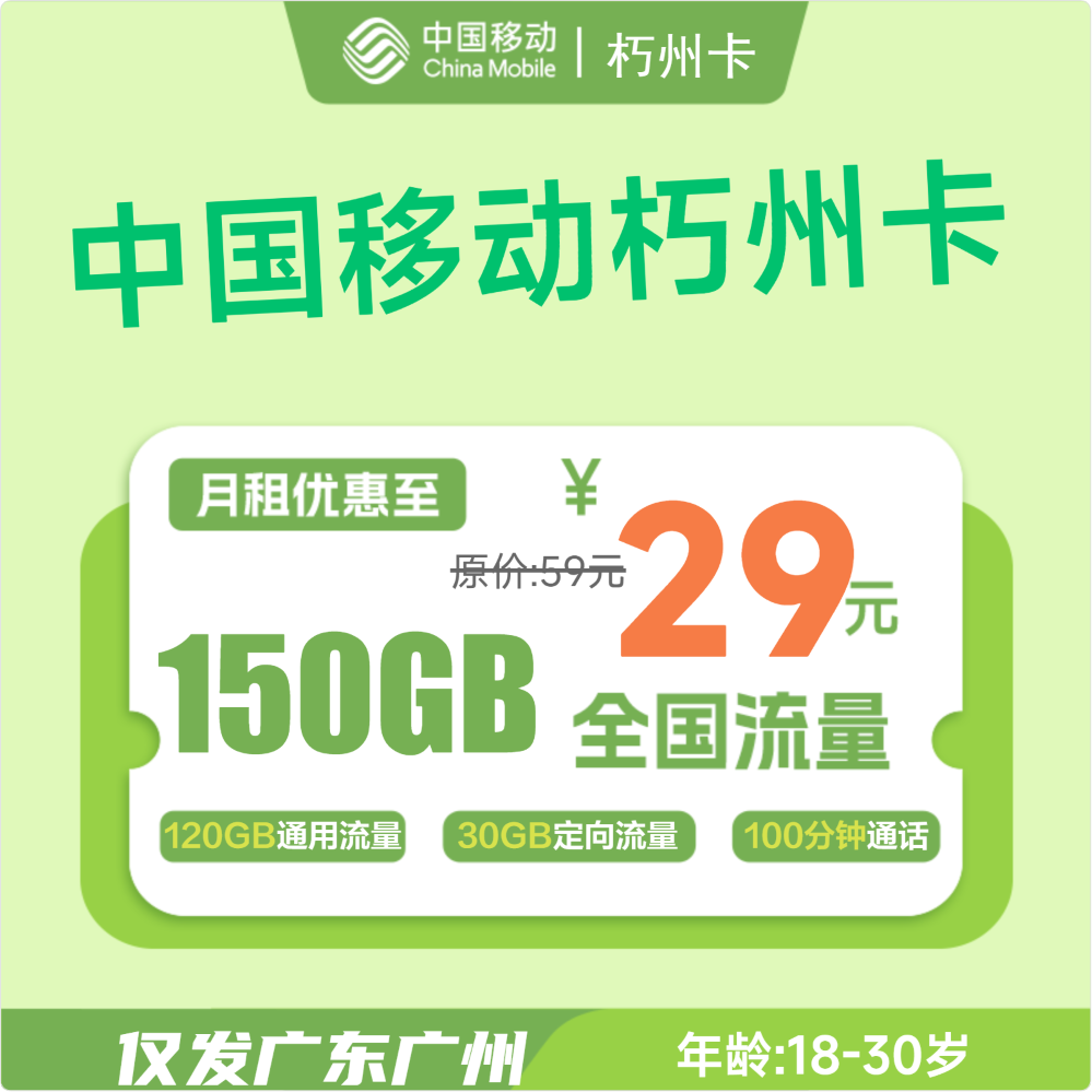 29元120G通用+30G定向+100分钟+会员权益(仅发广东广州)