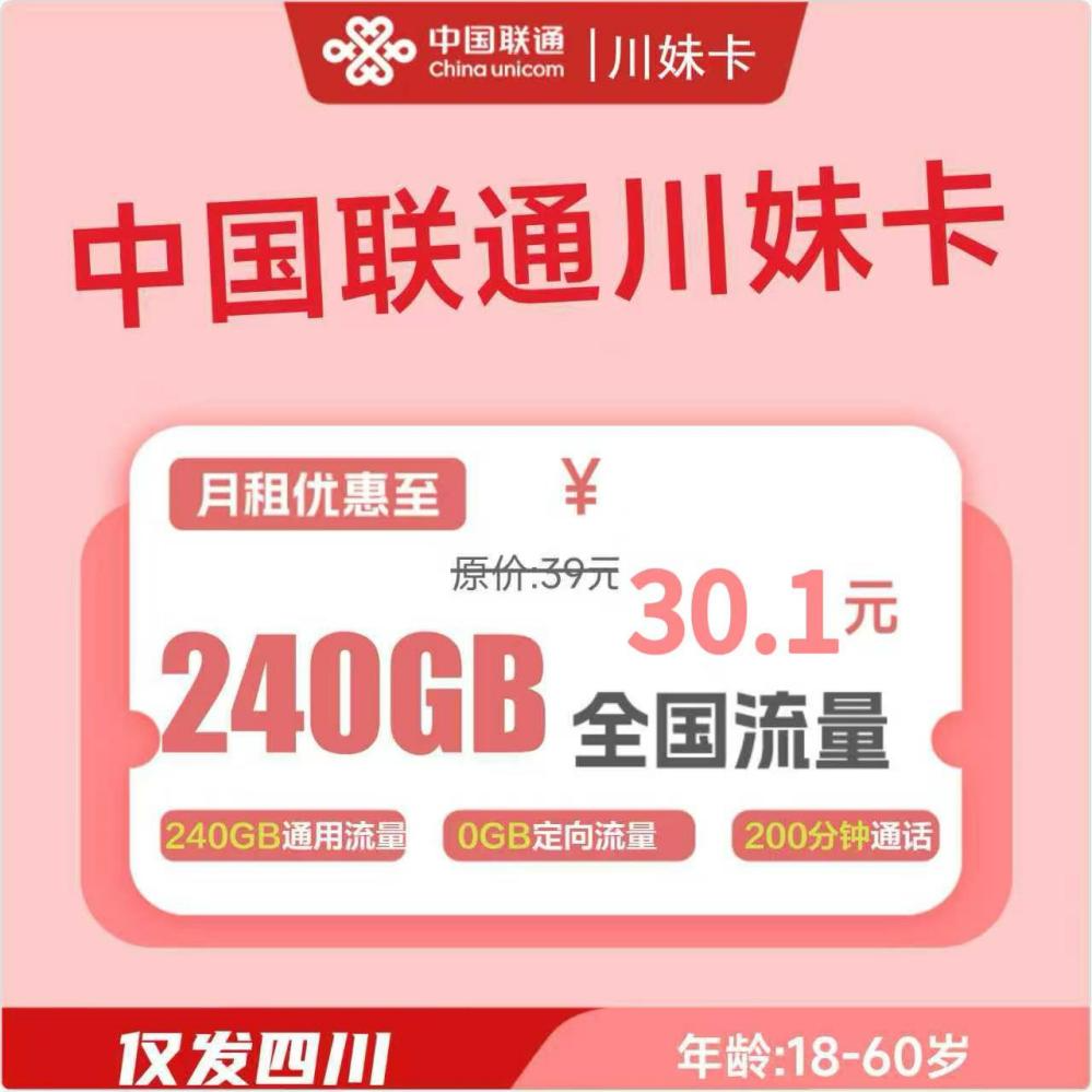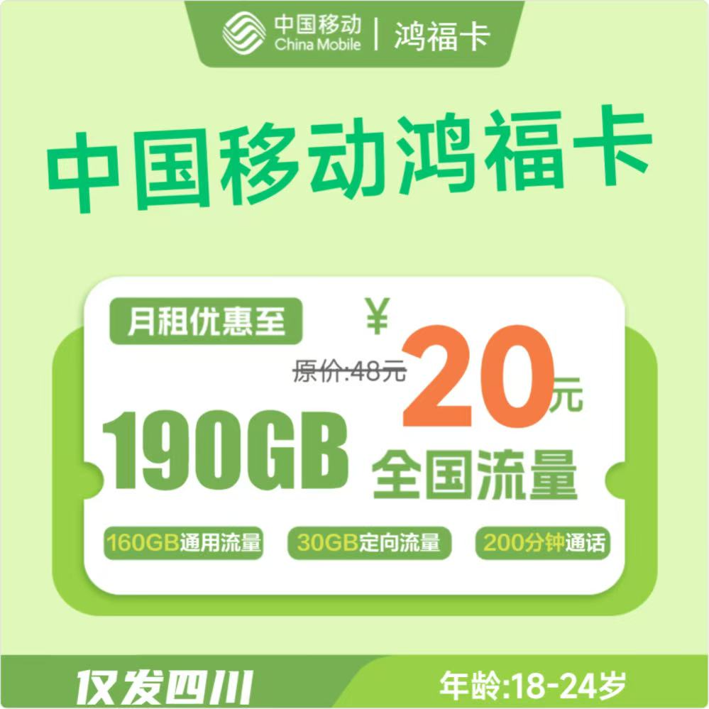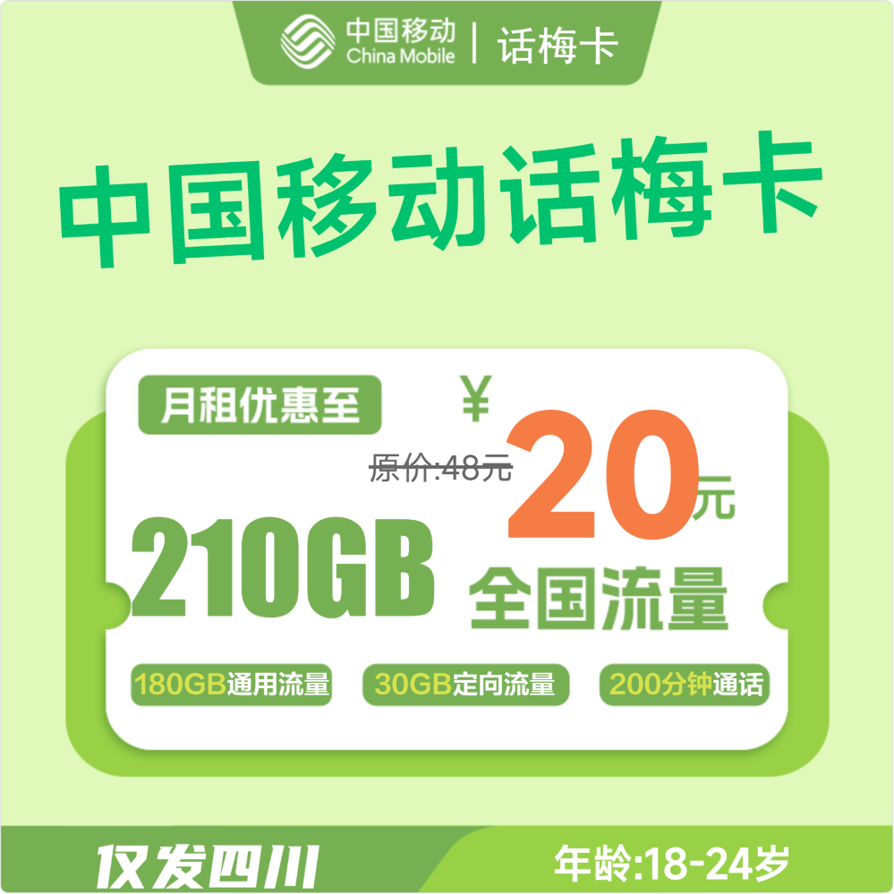 20元包180G全国+30G定向 +200分钟+会员权益(仅发四川)